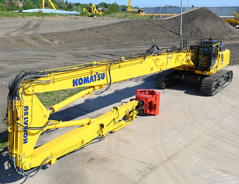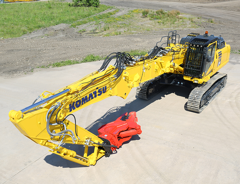 L’escavatore PC390LC-11 HRD è una macchina potente, in grado di trasportare grandi attrezzature da demolizione in una grande varietà di configurazioni operative.
